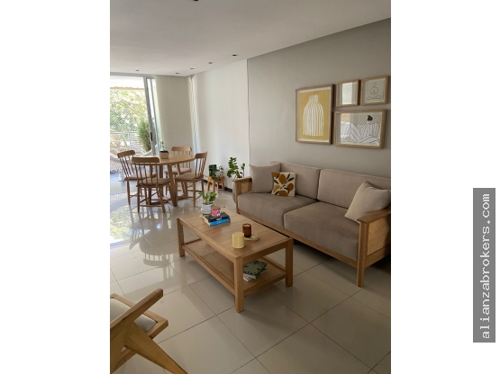 El apartamento cuenta con sala-comedor, balcon, cocina abierta, zona de oficios, habitacion principal con baño y walking closet, habitación auxiliar con baño completo, 1 parqueadero en sótano con depósito.